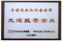 "創(chuàng)人民企業(yè),做不朽文章!"是集團(tuán)的創(chuàng)業(yè)精神和目標(biāo)。在企業(yè)自身的發(fā)展中,公司積極承擔(dān)起社會(huì)責(zé)任,通過社會(huì)資助、解決就業(yè)等方式,創(chuàng)業(yè)回報(bào)社會(huì)。2004年3月集團(tuán)被國家勞動(dòng)和社會(huì)保障部,全國工商聯(lián)評(píng)為"全國就業(yè)和社會(huì)保障先進(jìn)民營企業(yè)"。在被表彰的125家先進(jìn)民營企業(yè)中,集團(tuán)就業(yè)和社會(huì)保障綜合指數(shù)名列第三位。