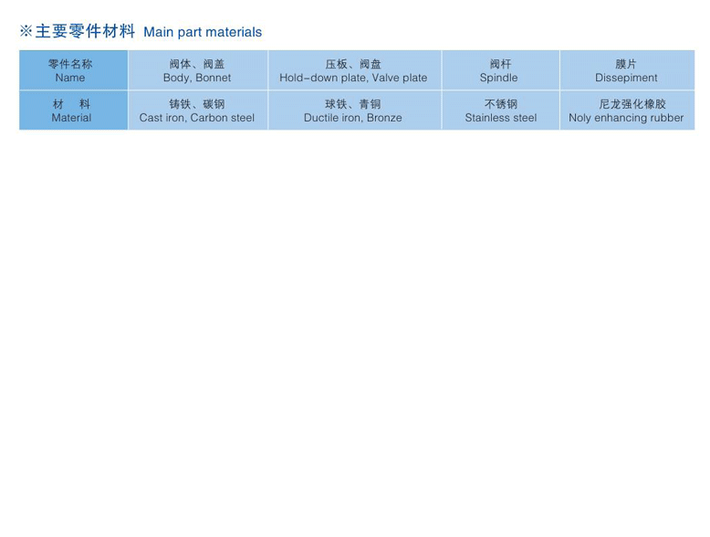 該閥采用雙室隔膜傳動機構(gòu)替代活塞式,無運動磨損,壽命長。安裝在各類沉淀水池的底部壁外,用以排除池底的泥沙及污物。